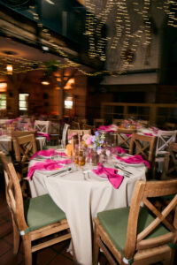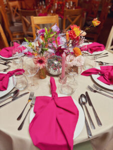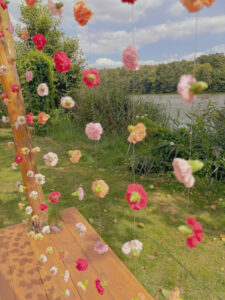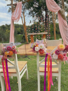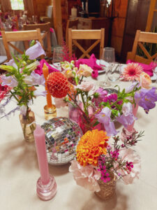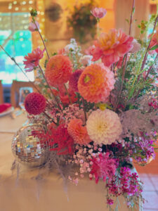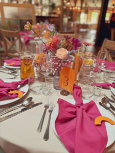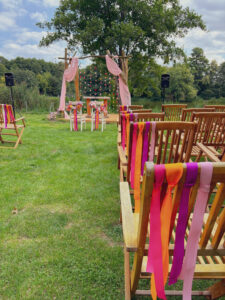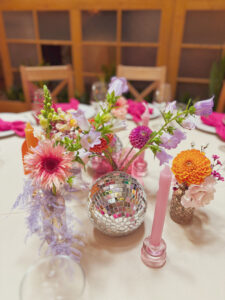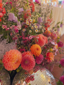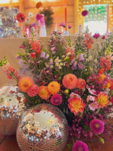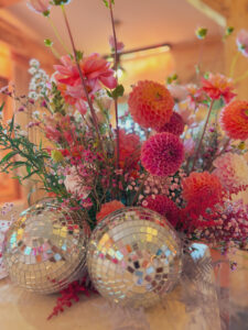 Kule disco, wiszące kwiaty w altanie zaślubin w plenerze, cała paleta barw, półokrągłe winietki i był z Nami nawet MIŚ DISCO – BYŁO BOSKO!